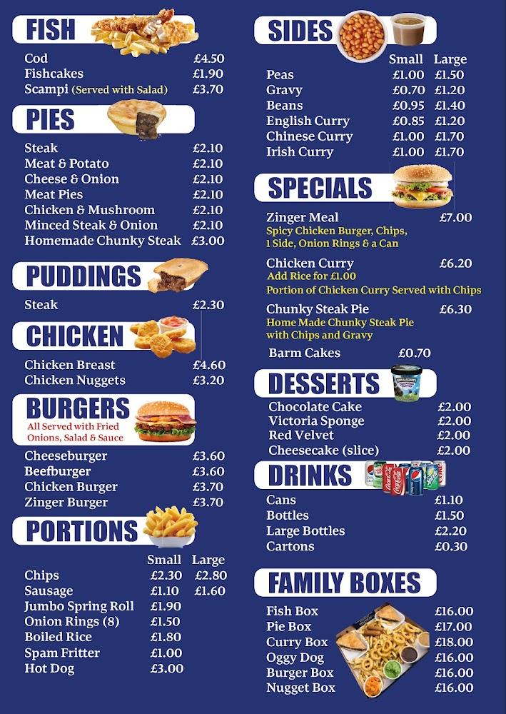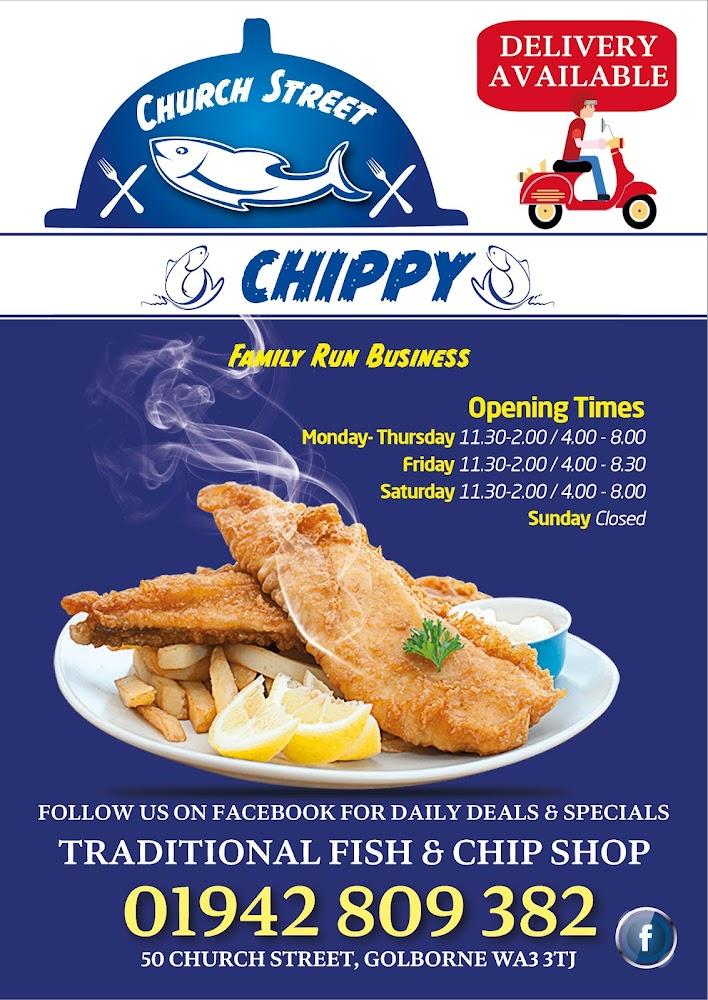 Located at 50 Church St, Golborne, Church Street Chippy stands as a beacon of tradition in the community. This charming fish and chip shop balances nostalgia with quality, offering beloved British fare that meets both taste and value. Open six days a week, it fills the air with comforting aromas that draw in lovers of classic British cuisine. The interior exudes a cozy, casual vibe, inviting customers to stay for a meal or grab takeaway for a picnic in the nearby parks. Accessibility options include wheelchair-accessible seating, ensuring everyone can enjoy their meal comfortably. With free street parking available, visiting is hassle-free, making it a great spot for quick bites or family lunches. Furthermore, the friendly staff cultivate a welcoming atmosphere, enhancing the overall dining experience. The dedication to freshly prepared food, along with a variety of menu options, cements Church Street Chippy's status as a beloved local establishment.
